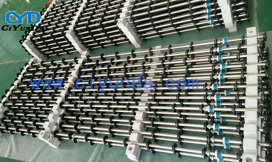 為我適應市場需求,更好的服務客戶,我們現在可以提供LCD/PDP輸送輪組,可以把各種材質的輸送軸、各種UPE滾輪、磁力輪及軸承等各個配件,組裝成整組供貨。目前產品有6.5代線軸組、7代線軸組、8.5代線軸組、10.5代線軸組等。也可以按客戶要求定做。工人組裝現場。